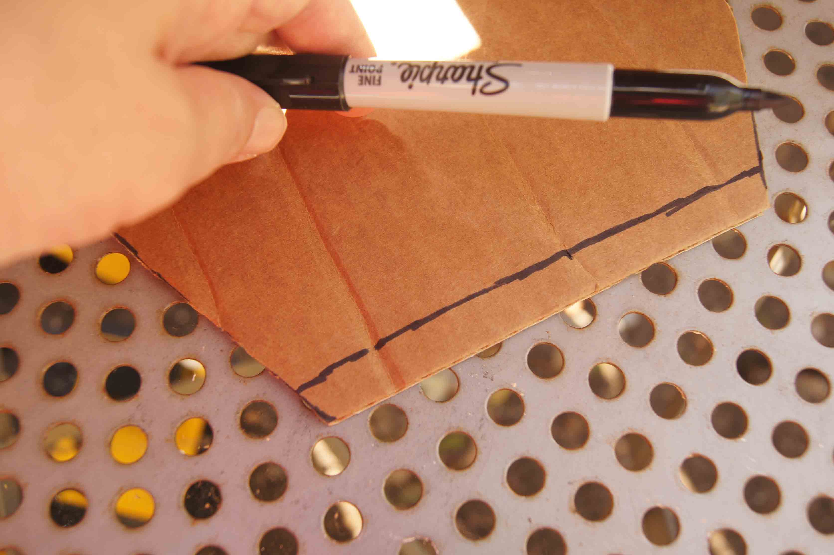 4. The end flaps stand up straight while the long side flaps angle in. The tops of the end flaps will not line up, they will be a bit taller than the side flaps. I drew a couple of lines to mark where I needed to cut off the excess.