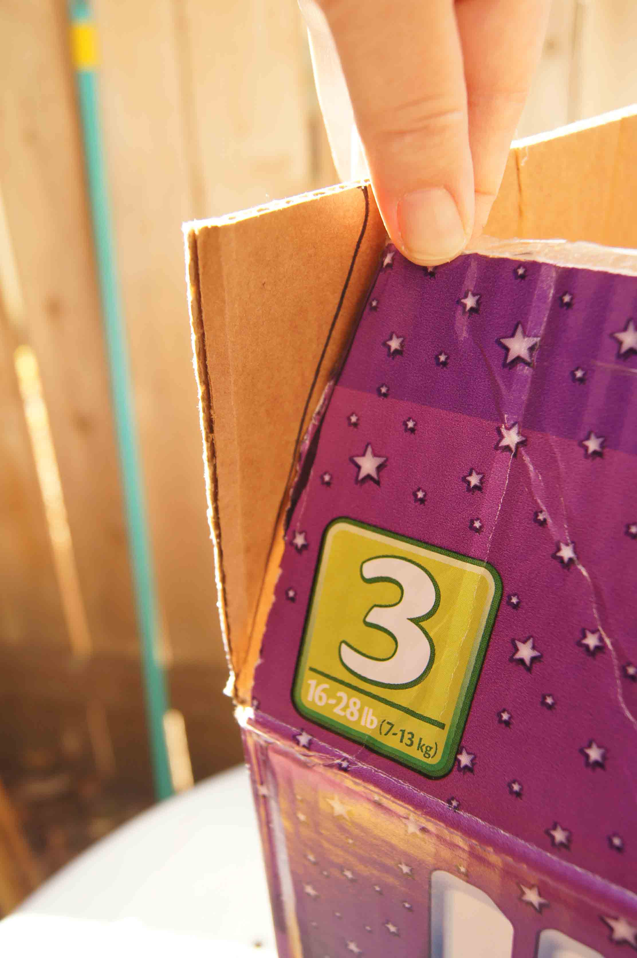 NOTE: If you are doing a design where the child stands inside the hopper, it is very important that you trim at least 2 inches from all of the “flaps”. You might need to trim more depending on how wide your box is.