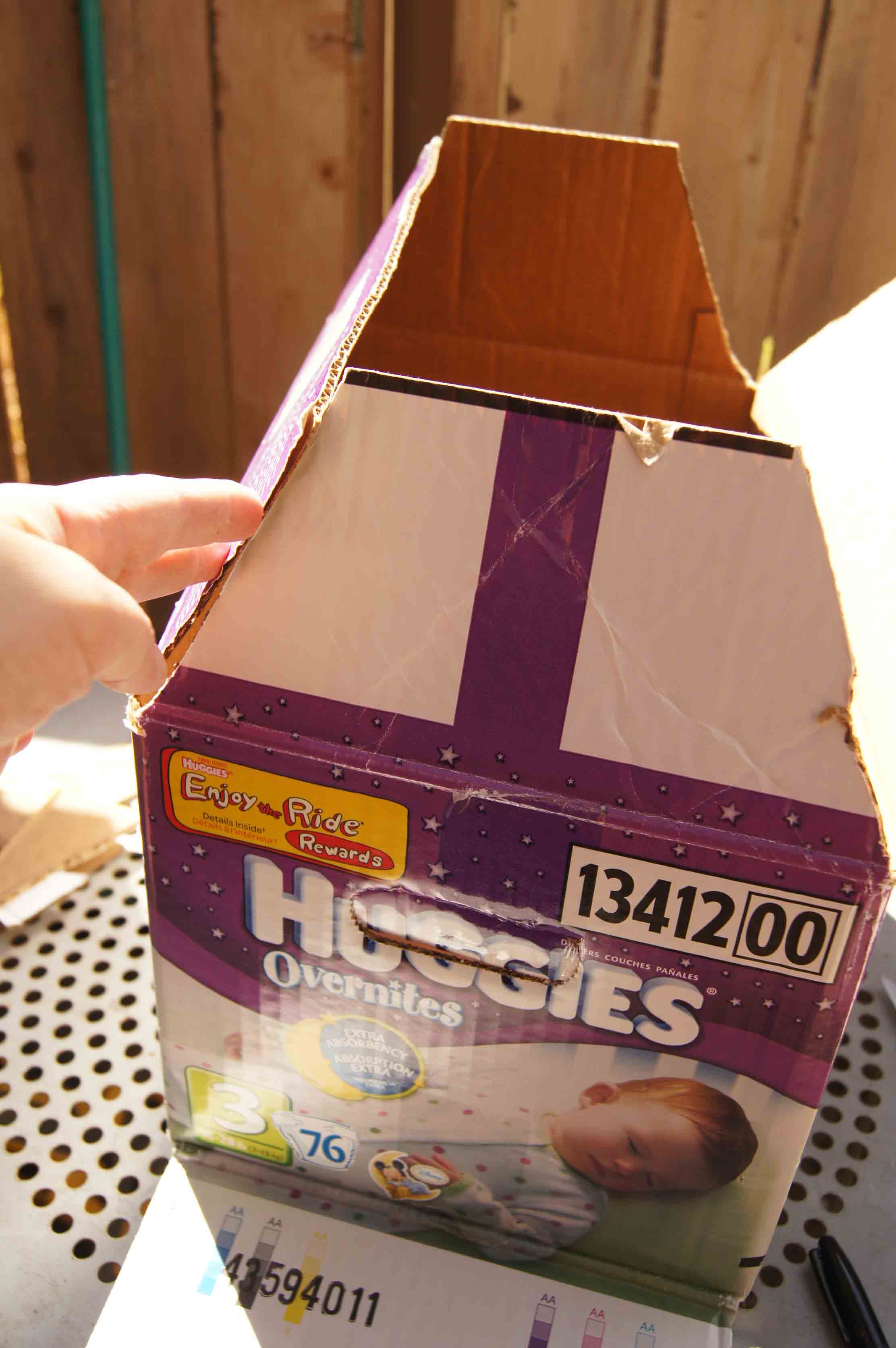 1. Pick a box for the hopper. Last year I collected boxes for months before hand. I was lucky enough to find one that was just perfect in width and depth. It needs to be wide enough so that the child can fit inside of it.SONY DSC